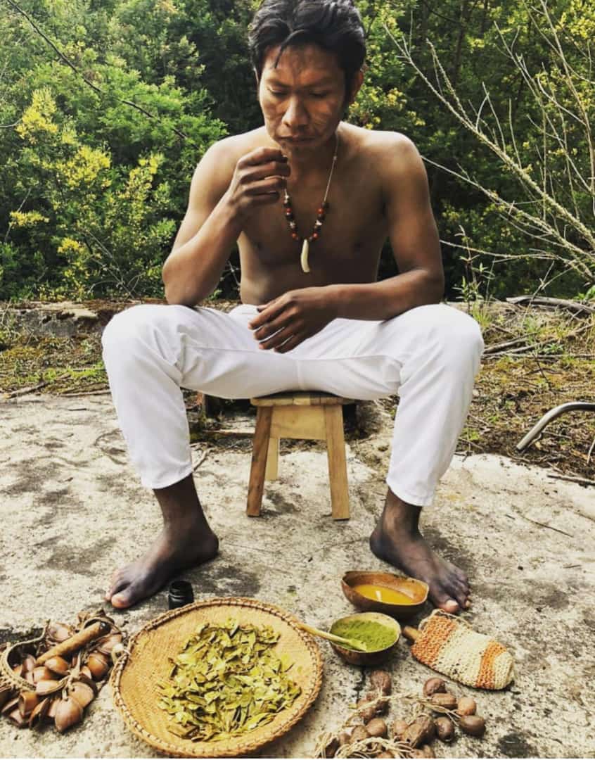 Aimema Úai (palabra de la Garza) Artista Muruy-Muina hijo del Tabako, Koka y Yuca Dulce. Originario de la Chorrera Amazonas, resguardo Predio Putumayo. Lleva la memoria histórica de su territorio a través del Arte y la medicina ancestral, el Mambe y Ambil. Mediante los cuales construye reflexiones críticas frente a todos los sistemas coloniales que han venido desviando el pensamiento propio de los pueblos originarios.